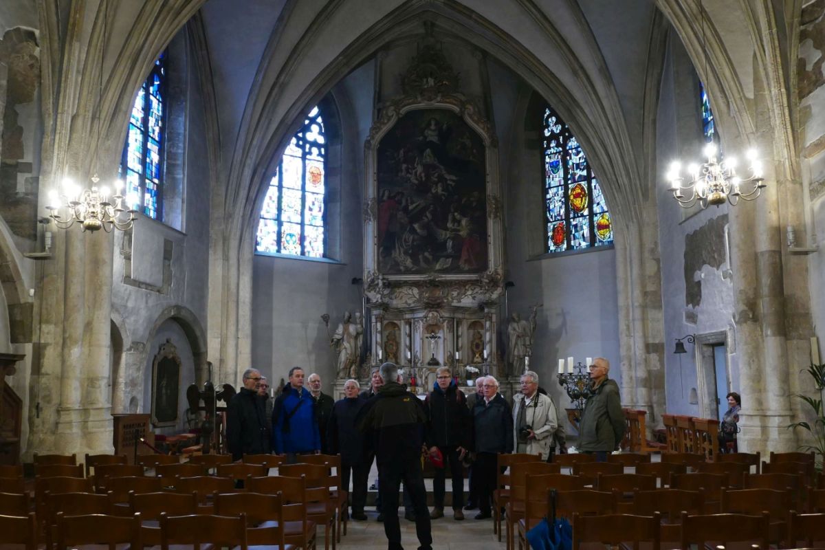 Heute, kurz vor acht, startete die mit 16 Mann deutlich reduzierte Sängerschar mit unserem Busfahrer und Freund Klaus Dogen vom Friesdorfer Klufterplatz Richtung Luxemburg. Nach dem Zustieg unserer Reiseleitung an der Autobahn nahe Wittlich trafen wir gegen Mittag wie geplant in Luxemburg ein. Nach ein paar Liedern aus unserem Konzertprogramm im Pavillon auf dem Marktplatz, Schuberts „Heilig“ in der Pfarrkirche St.Michael, trafen wir uns zum gemeinsamen Mittagstisch im Restaurant Le Petrusse. Die anschließende „Citytour“ mit unserer temperamentvollen Führerin Plateau Kirchberg, Kasematten, Goldene Frau u.v.m. endete mit der Weiterfahrt (leider Autobahn wegen Straßenbau im Müllerthal) nach Echternach. Die Führung in der röm. Basilika St.Wilbrord und dazu passend wieder Schuberts „Heilig“ waren ein weiterer Höhepunkt  an diesem Sonntag. Nach individueller Freizeit mit Kaffee und Kuchen beendeten wir die Rückfahrt  kurz nach 19 Uhr mit dem Einkehrschwung  bei Sanja. Das Resthäufchen (9) Sänger ließ den, trotz leichtem Regen und Wolken schönen Ausflug, bei dem gewohnt guten Essen und ein paar Bierchen ausklingen.