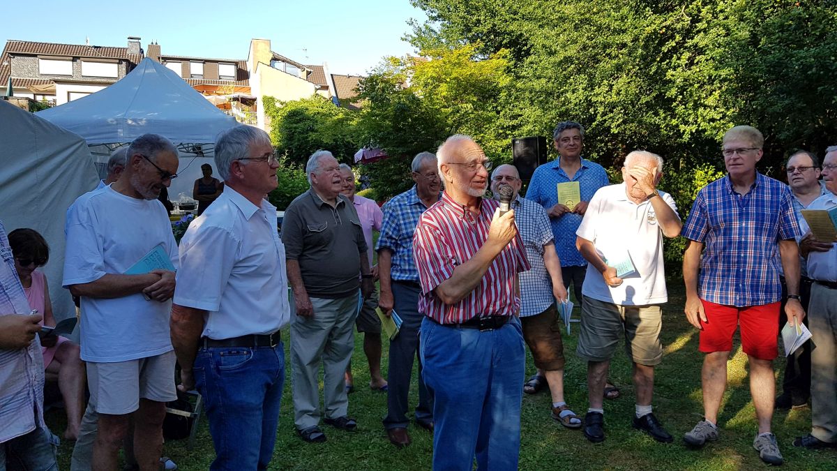 Am Abend des 29.06.2019 trafen sich die Sänger um 19:00 Uhr um Alfred musikalisch und persönlich zu gratulieren. Dies taten wir dann auch mit bekannten Liedern aus unserem Repertoire. Die Geburtstagsgäste waren schon sehr zahlreich vorhanden, hatte Alfred doch „Groß zur Gartenparty“ eingeladen. Unser Vorsitzender Klaus Rech hielt eine kurze Ansprache und überreichte ein Geschenk im Namen der Sänger. Das anschließend dargebrachte „Hoch“ galt Alfred und den anwesenden Jubilaren. Danach erfreuten sich Gäste und Sänger am eröffneten Buffet. Es wurde ein langer Abend bei guten Gesprächen und neuen Bekanntschaften. Danke Alfred.