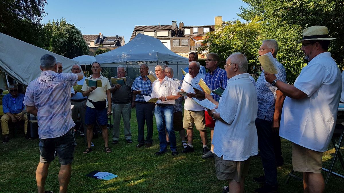 Am Abend des 29.06.2019 trafen sich die Sänger um 19:00 Uhr um Alfred musikalisch und persönlich zu gratulieren. Dies taten wir dann auch mit bekannten Liedern aus unserem Repertoire. Die Geburtstagsgäste waren schon sehr zahlreich vorhanden, hatte Alfred doch „Groß zur Gartenparty“ eingeladen. Unser Vorsitzender Klaus Rech hielt eine kurze Ansprache und überreichte ein Geschenk im Namen der Sänger. Das anschließend dargebrachte „Hoch“ galt Alfred und den anwesenden Jubilaren. Danach erfreuten sich Gäste und Sänger am eröffneten Buffet. Es wurde ein langer Abend bei guten Gesprächen und neuen Bekanntschaften. Danke Alfred.