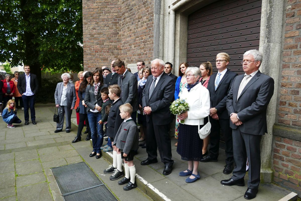 sang heute der Männerchor zur Ehre des heutigen Tages, des Ehrentages unseres langjährigen und verdienten Mitglieds Peter Werner Dung und seiner Ehefrau Marianne. Sie feierten heute am Christi Himmelfahrtstag in der feierlichen Gemeindemesse in St. Servatius ihren 65. Hochzeitstag mit ihren Kindern, Enkeln und Urenkeln.