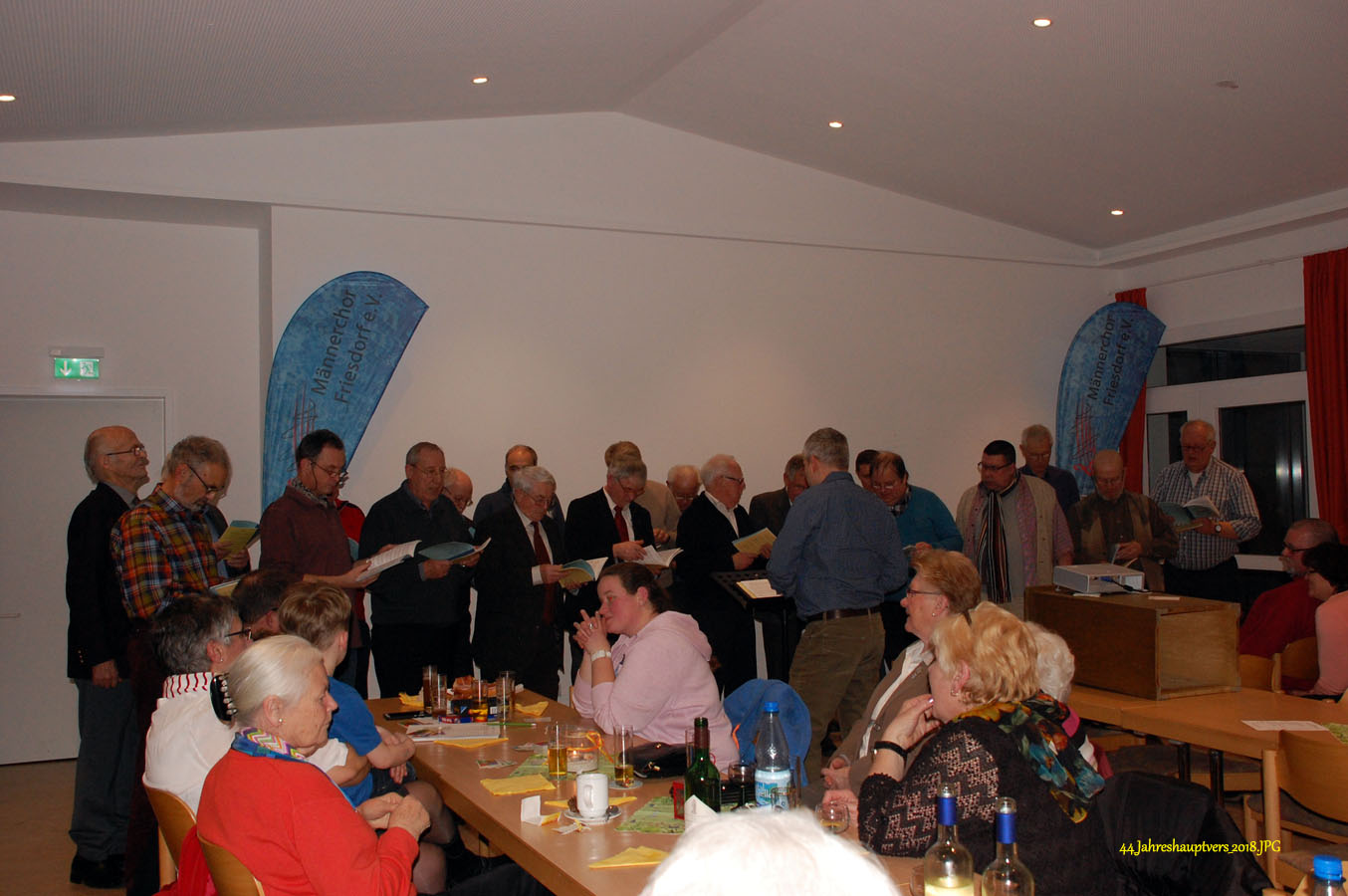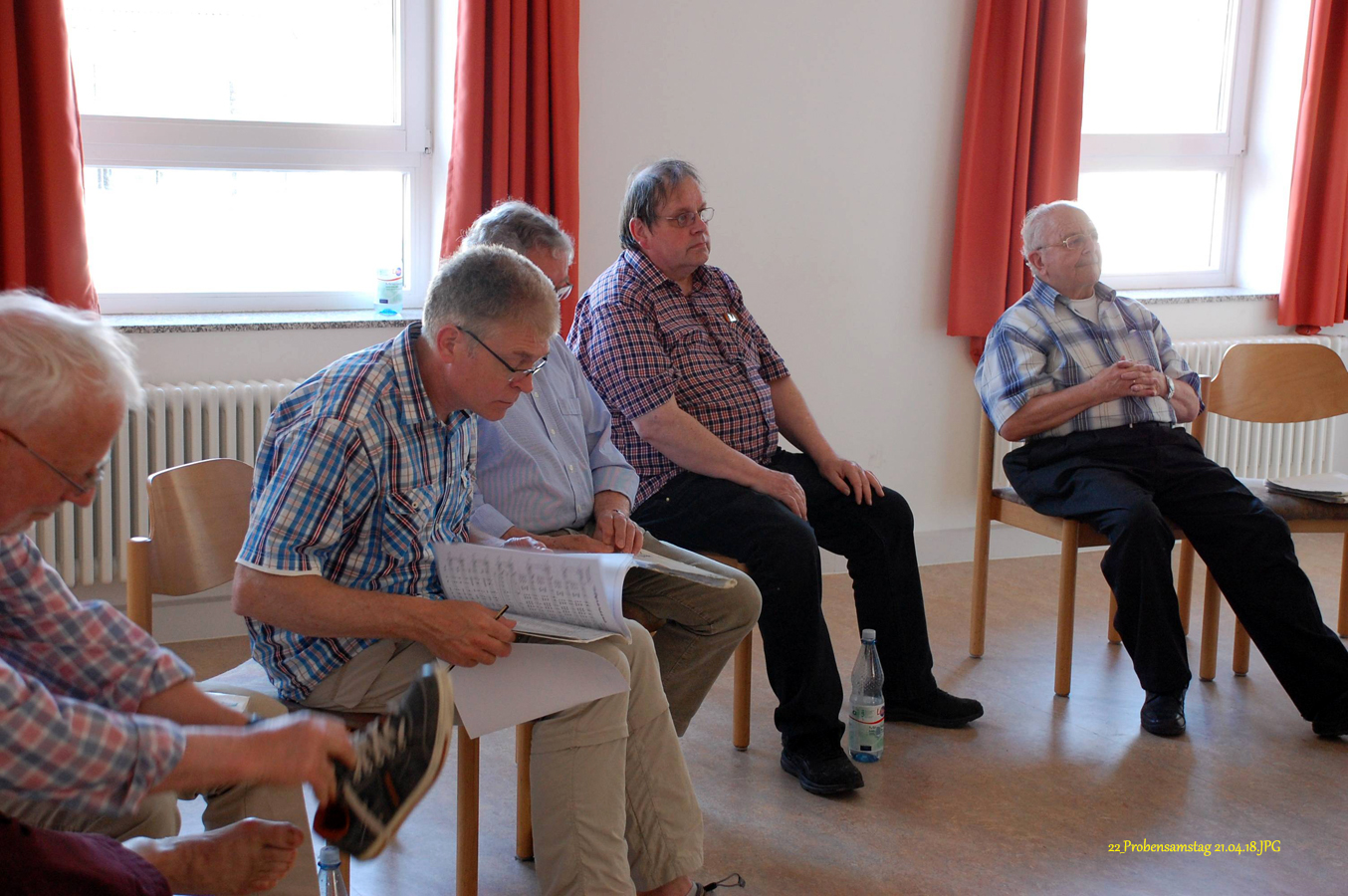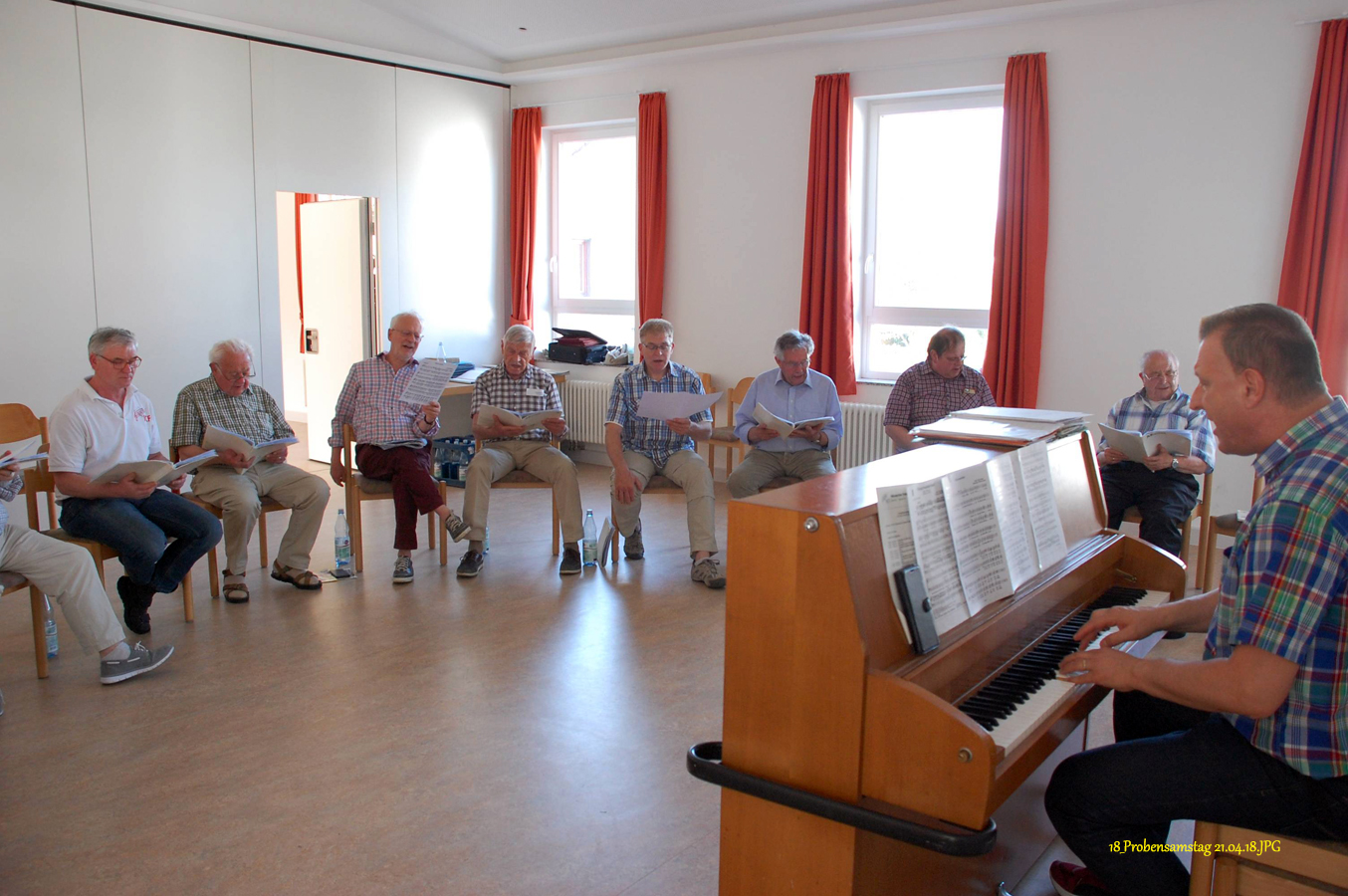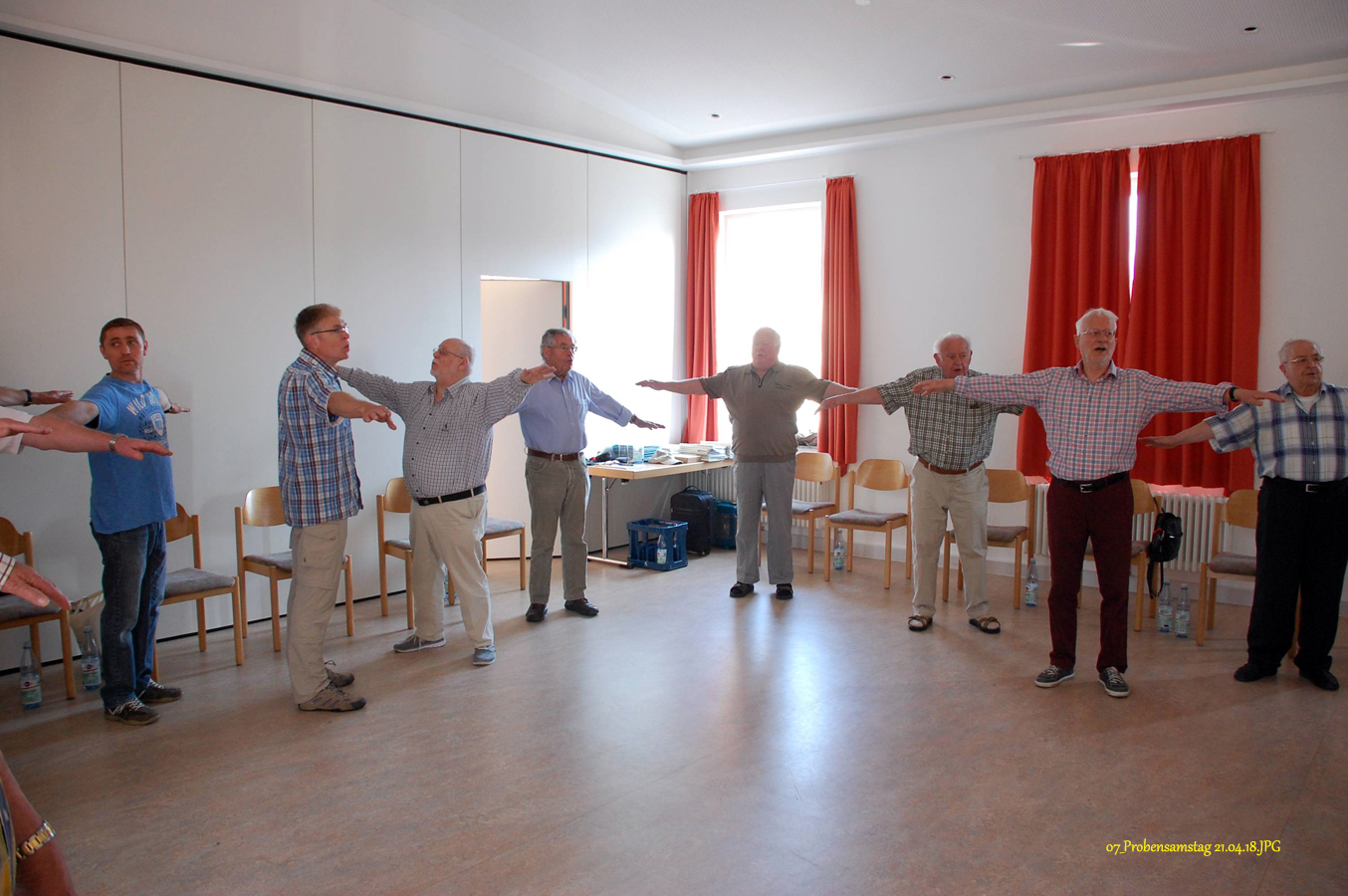 16 interessierte und engagierte Sänger des Männerchores Friesdorf hatten heute Gelegenheit, an einer vom Vorstand organisierten Stimmbildung im Pfarrzentrum in Friesdorf teilzunehmen.