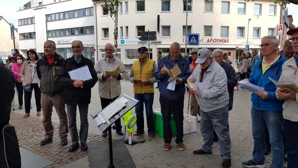 Der Ortsausschussvorsitzende Walter Omsels hatte uns eingeladen, den Mai nach der Pandemie mit der Ortsgemeinde musikalisch zu begrüßen. Gerne kamen wir der Einladung nach und sangen auch hier gut 30 Minuten Lieder zum Mai, von Rhein und Wein.