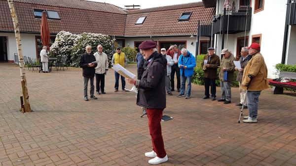Uns Männern war es aber ein besonderes Anliegen, mit 19 Sängern war der Chor fast vollständig besetzt, Wolfgang, der unzählige Male mit uns in Gottesdiensten und bei anderen Gelegenheiten immer freundlich und gut gelaunt, begeistert gesungen hat, zu ehren und ihm für seine langjährige Treue Dank zu sagen.