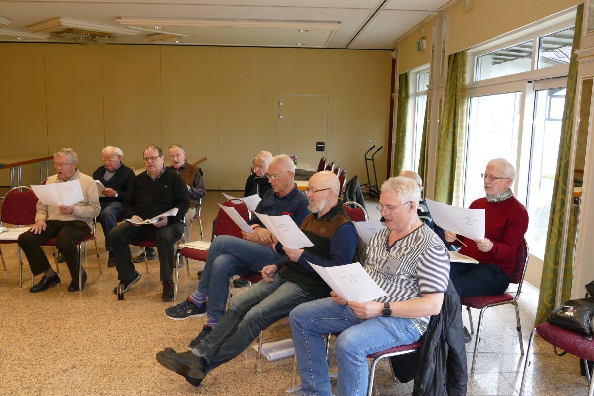 Danach aber ging die Arbeit zügig weiter und bis zur kurzen Kaffeepause war ein großer Teil der anspruchsvollen Konzertstücke erarbeitet. Gegen 17.30 Uhr war dann für uns 20 Sänger der anstrengende Probentag beendet. Danach erfolgte eine Aussprache zu Ablauf und Inhalt des Probentages. Gegen 18:00 Uhr fuhren wir alle mit dem Gefühl nach Hause, dass wir für uns als Chorgemeinschaft viel erarbeitet und erreicht haben.