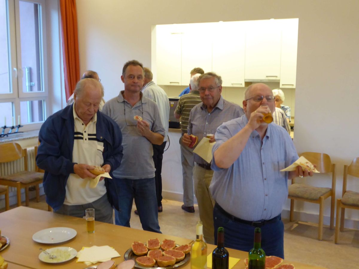 Zu einem Umtrunk im Gemeindezentrum hatten Wolfgang Klaile (70.Geburtstag) und Sven Grunau (60.Geburtstag) die Sänger nach der Probe zum gemeinsamen „130. Geburtstag“ eingeladen. Nach einem Hoch auf die Jubilare aus den Kehlen der Sänger, konnte der fröhliche Teil beginnen. Neben leckeren Brötchen und Getränken wurde der Abend bei guten Gesprächen genossen.